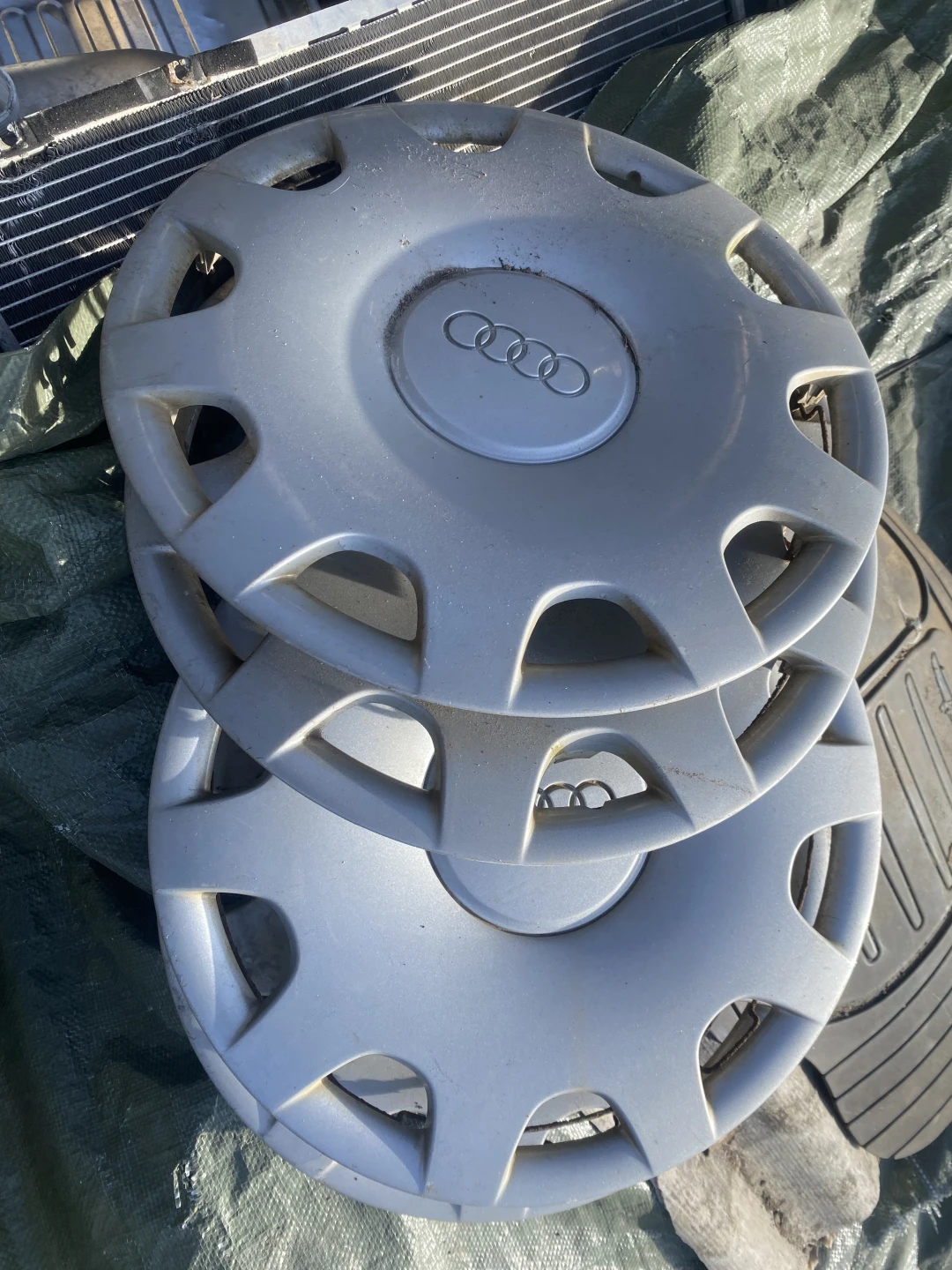 Līdzi nāk dzelzs diski ar riepām (ziemai īsti nederēs) + oem Audi kalpaki