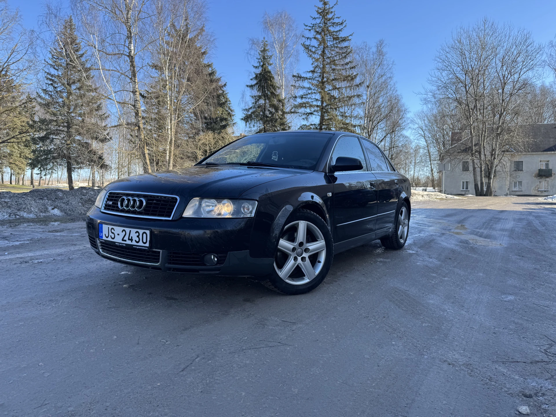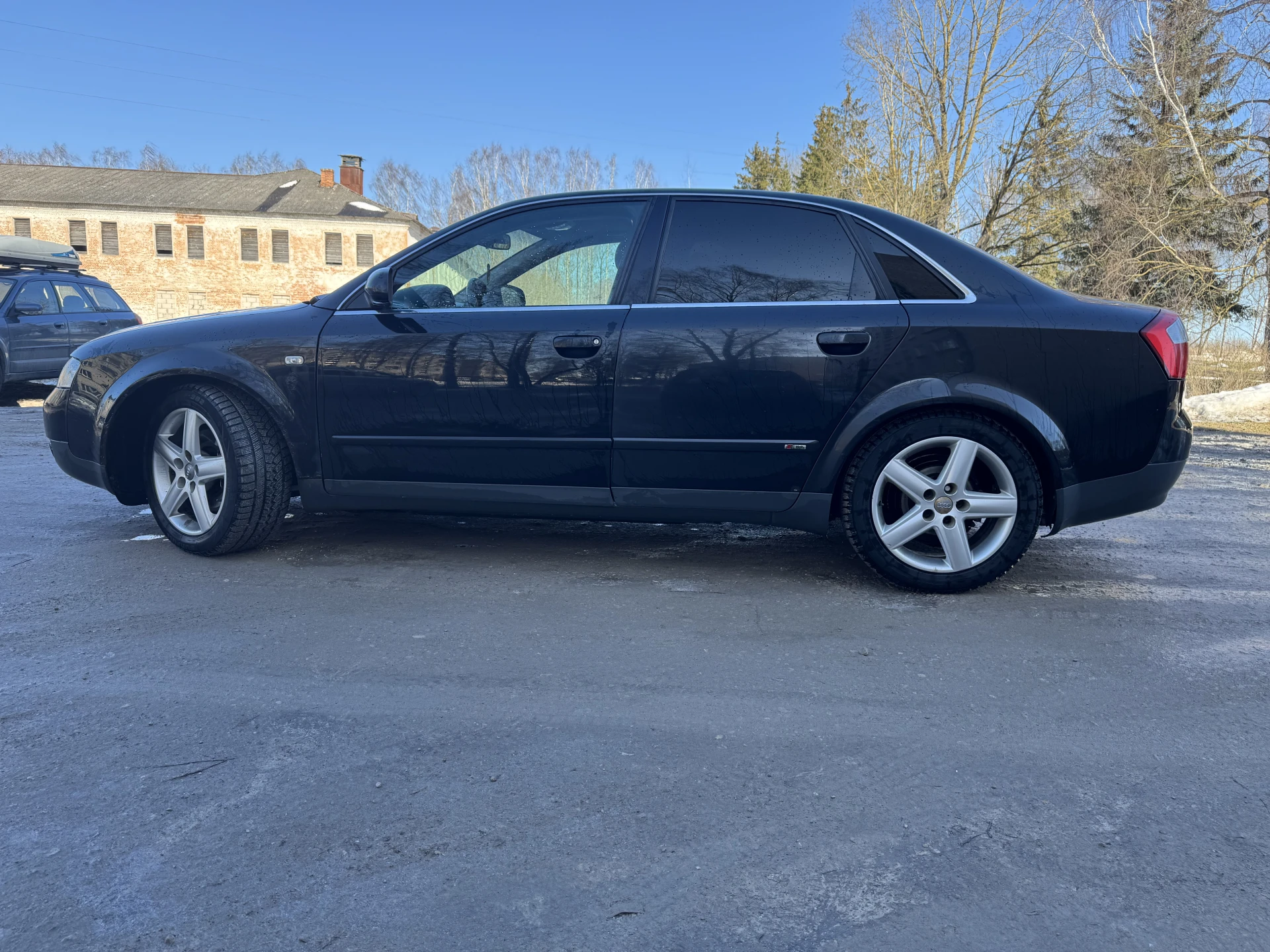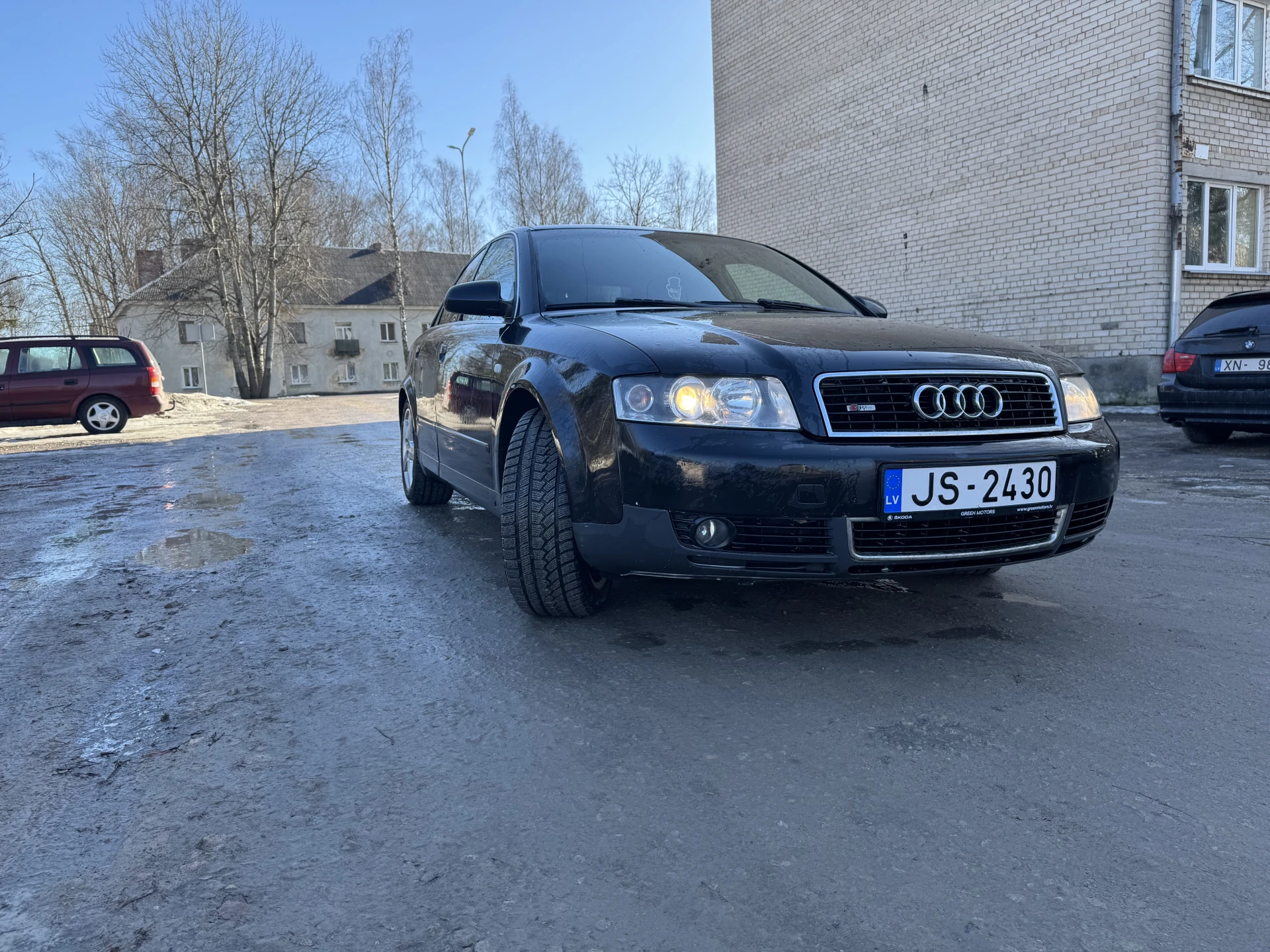 Audi A4 2002. gada ar 2.5 V6 motoru, mašīna ļoti labā tehniskā stāvoklī tikko izieta apskate, aizmugurē jauni bremžu kluči. Tikko veikta apkope, nomainīti visi filtri un eļļa. No vizuālajiem defektiem - priekšā uz kreisā spārna burbuļi.