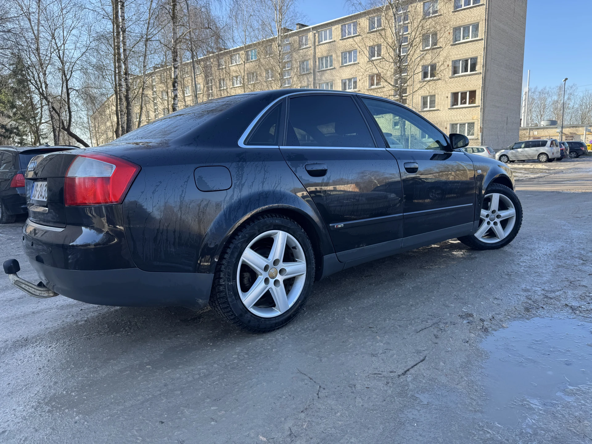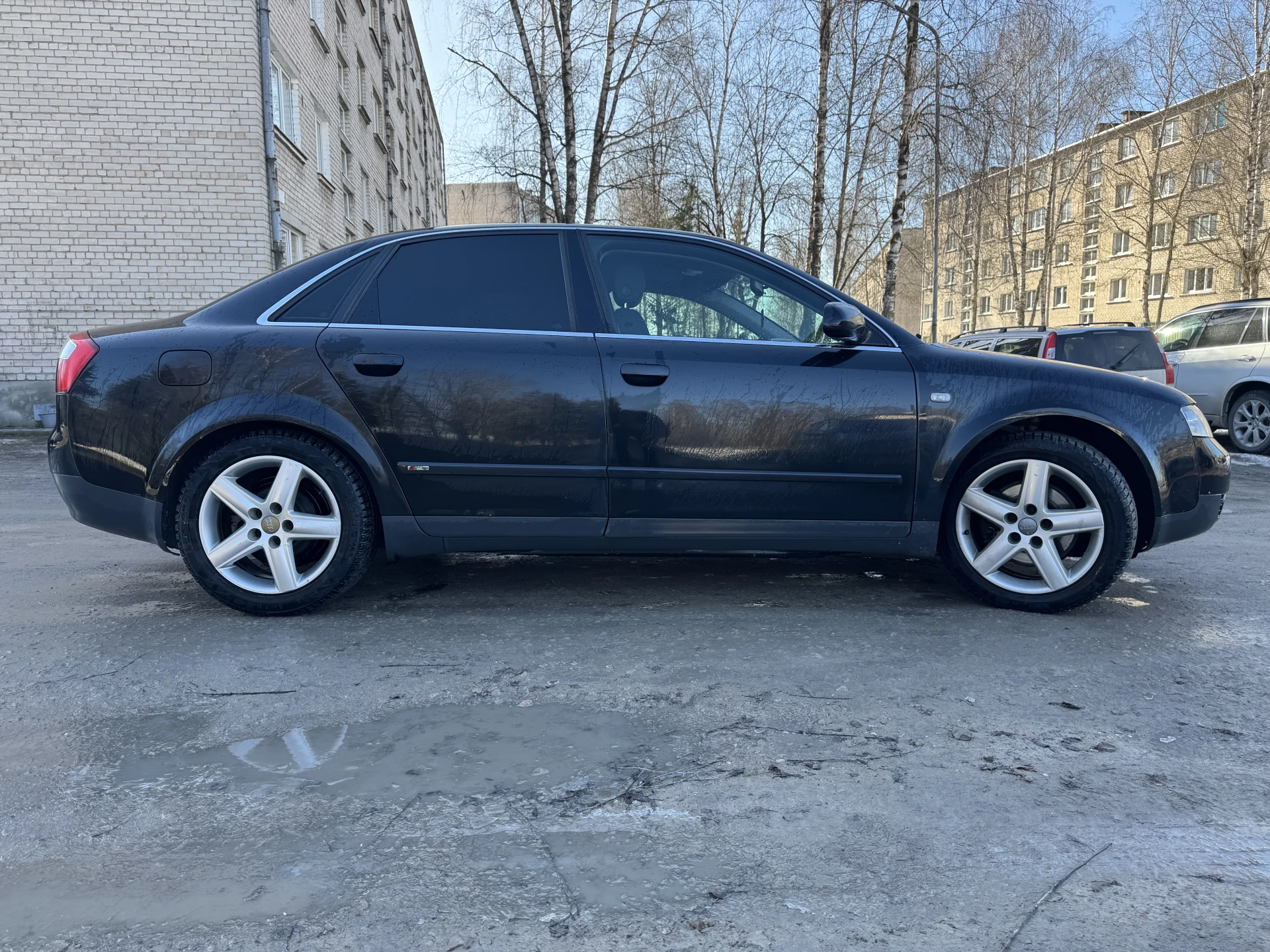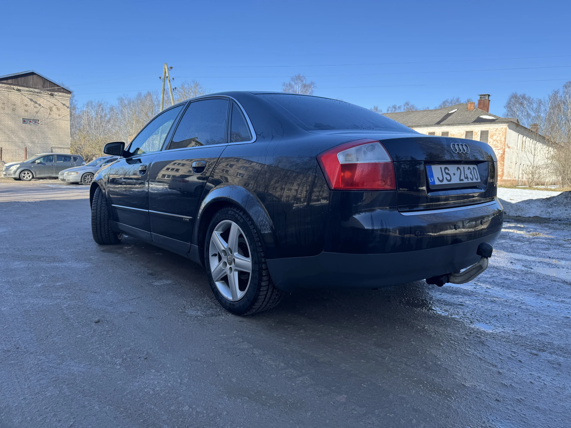 Audi A4 2002. gada ar 2.5 V6 motoru, mašīna ļoti labā tehniskā stāvoklī tikko izieta apskate, aizmugurē jauni bremžu kluči. Tikko veikta apkope, nomainīti visi filtri un eļļa. No vizuālajiem defektiem - priekšā uz kreisā spārna burbuļi.