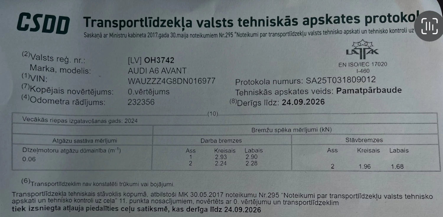 Tehniska apskate: 24.09.2026