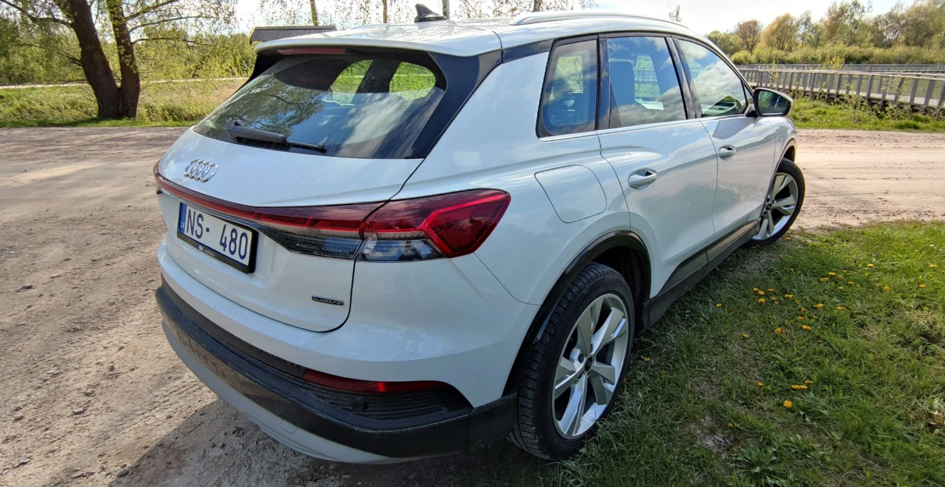 Audi Q4 e-tron 50 quattro ar Pvn, Garantija, Sline, sonos audio, Led Matrix, headup, panorāmas lūka, adaptīvā kruīzkontrole, digitālais spidometrs, atpakaļskata kamera, palīgsistēmu asistenti, 3 zonu klimatkontrole.