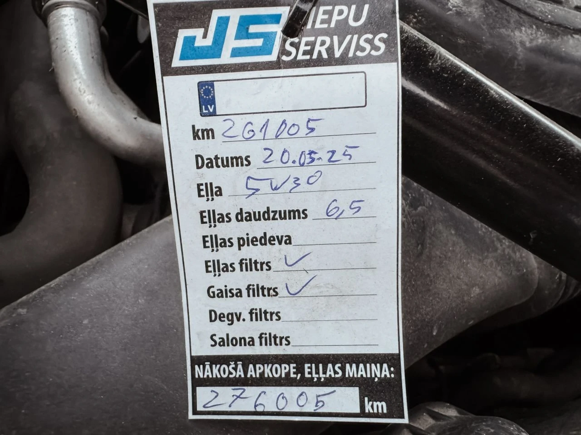 Maijā veikta apkope, līdz nākamajai apkopei vēl var nobraukt ~ 5000 km.