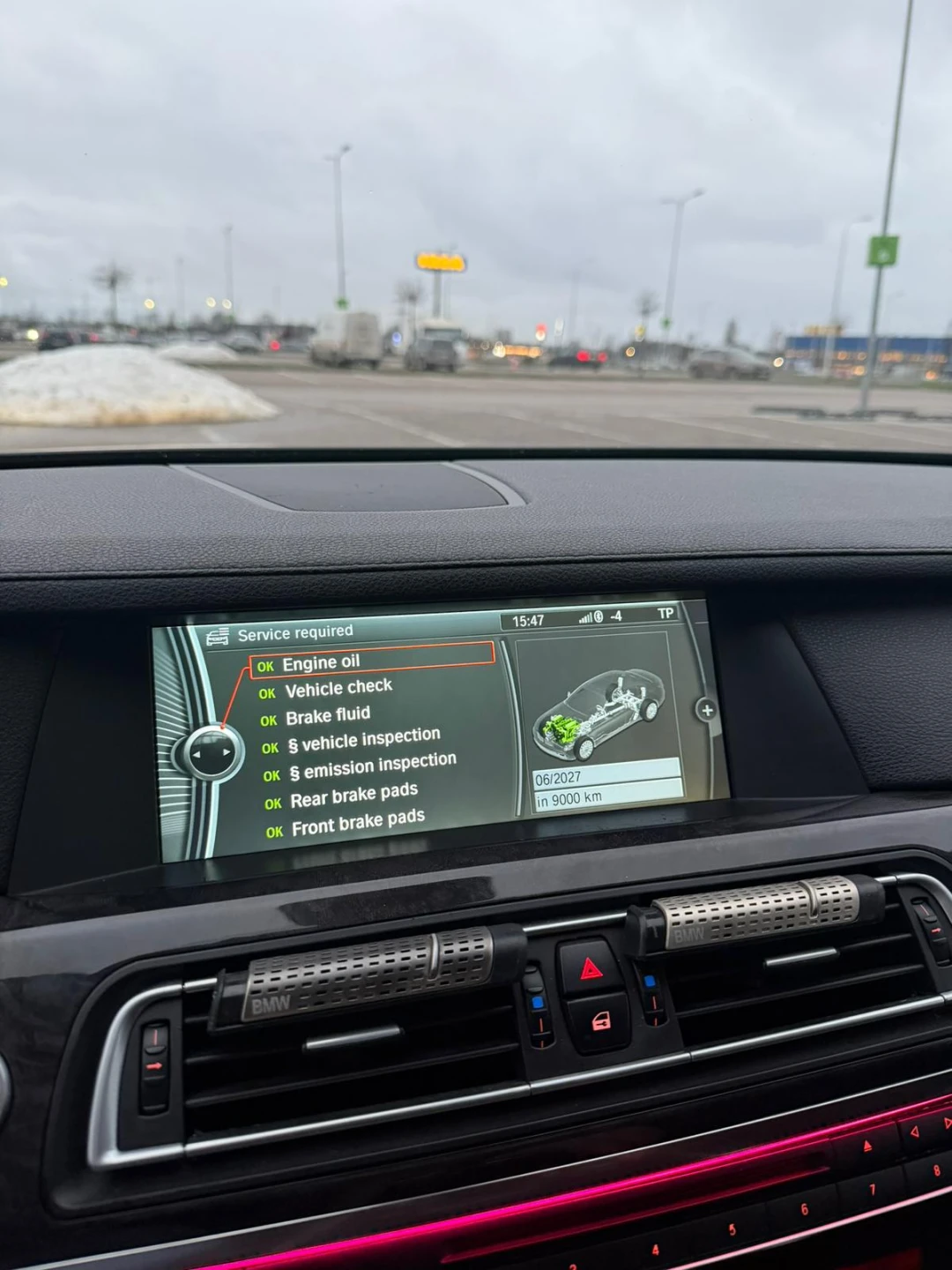 Servisa intervāli uz paneļa “OK”
