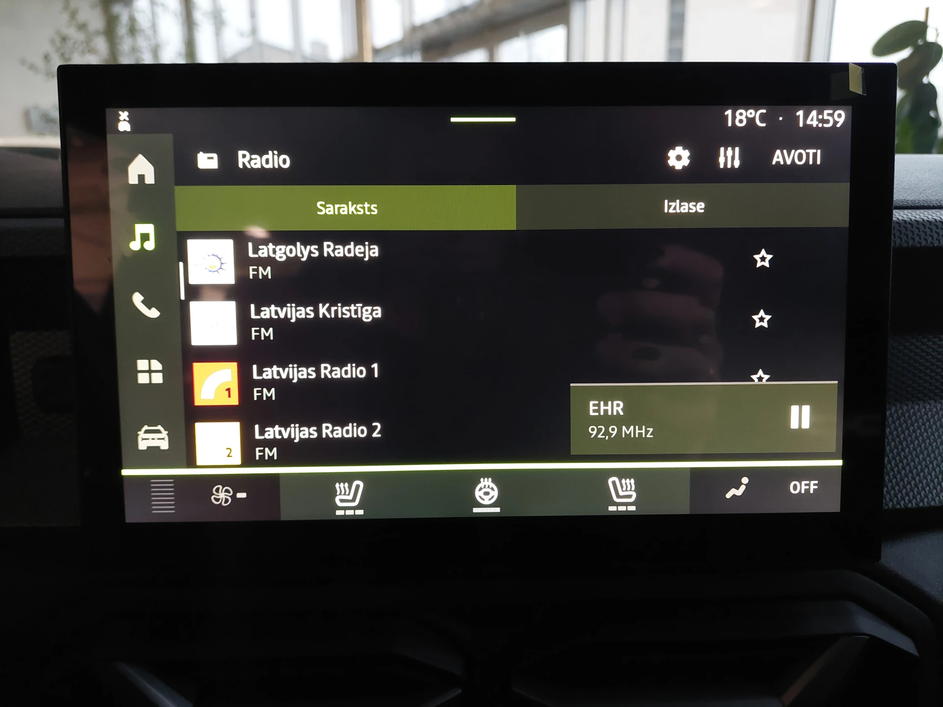 sēdeklis ar regulējamu augstumu; apsildāmi priekšējie sēdekļi