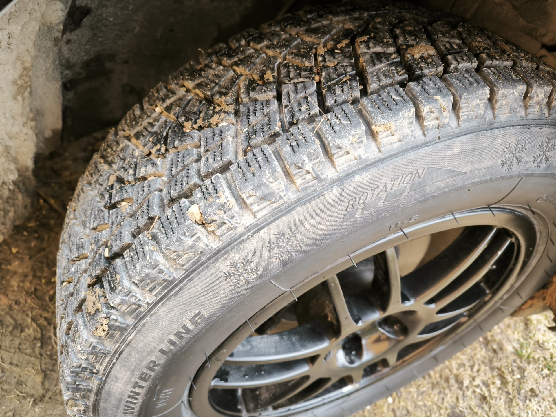 Uzliktas jaunas ziemas rupjās riepas .