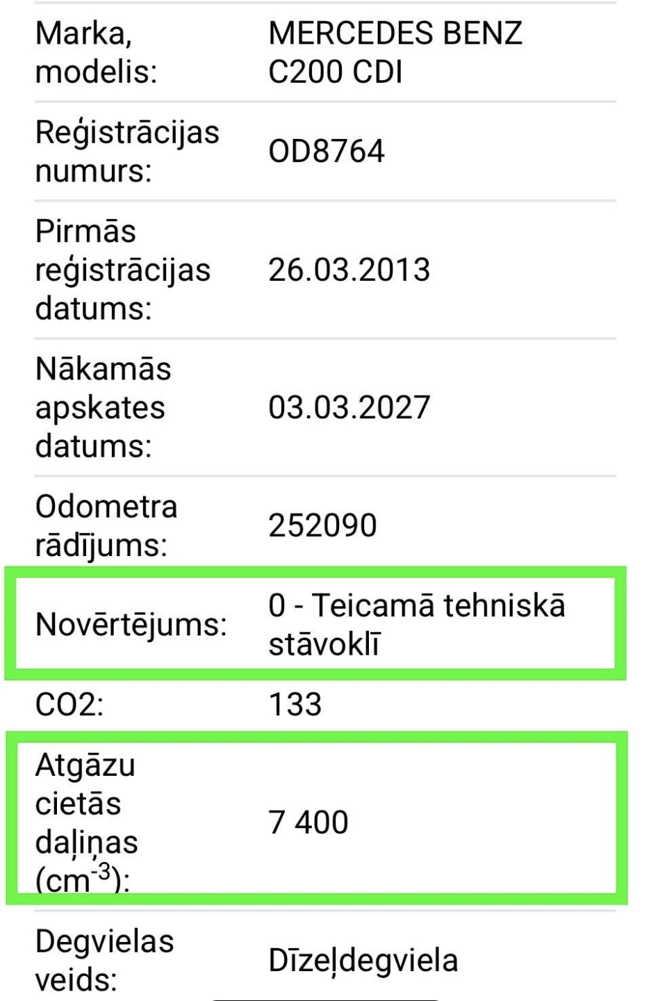 Mercedes Benz C200 ar tikko izietu svaigu tehnisko apskati. Visa ekoloģija vietā, cieto daļiņu filtrs strādā teicami. Ekonomisks 100 KW jaudīgs dzinējs. Vidējais degvielas patēriņš 4.8-5.9L/100km.