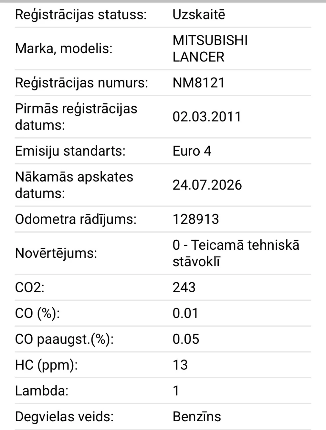 2011.gada izlaidums, 130000km nobraukums (redzams csdd mājas lapā).