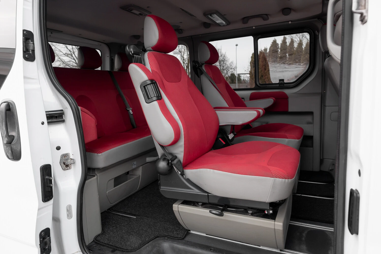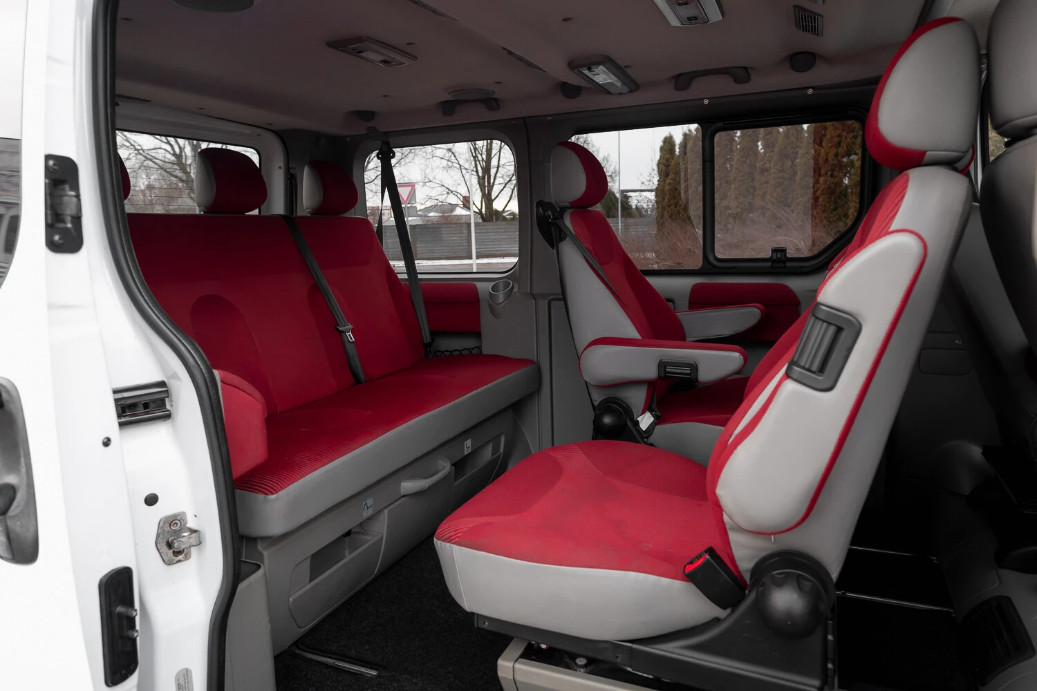 7 sēdvietas ar galdiņu, grozāmie sēdekļi.