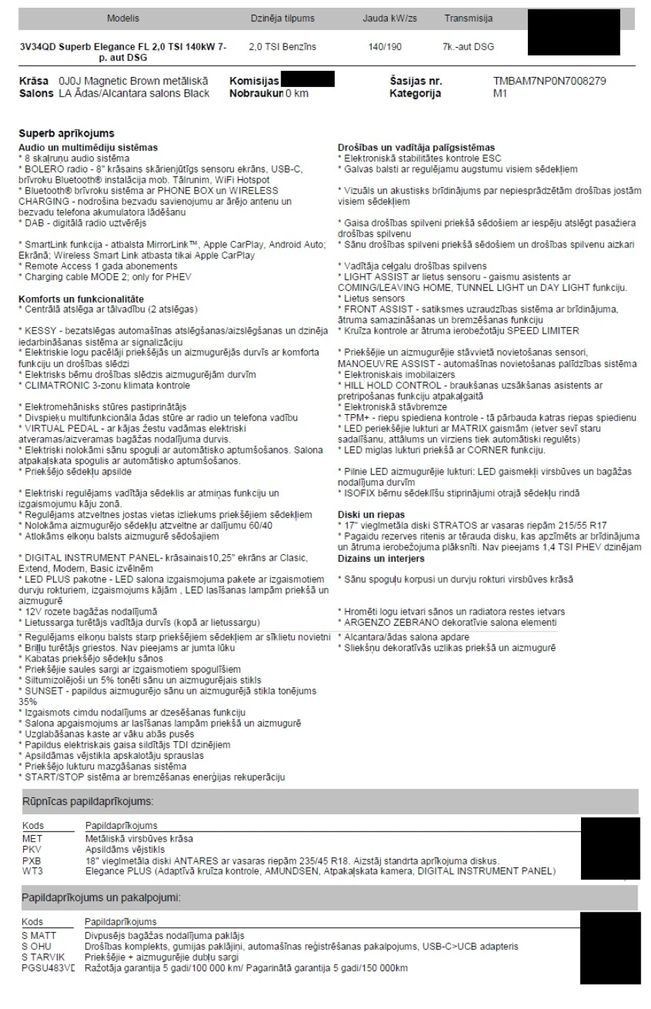 Spēkā vēl ražotāja garantija līdz 08.2026 vai 150tk km.
