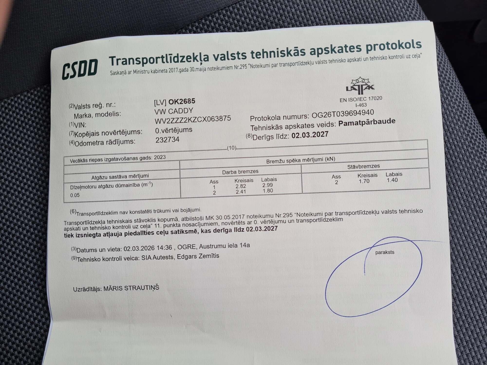 Tehniskā apskate uz gadu, bez aizrādījumiem.