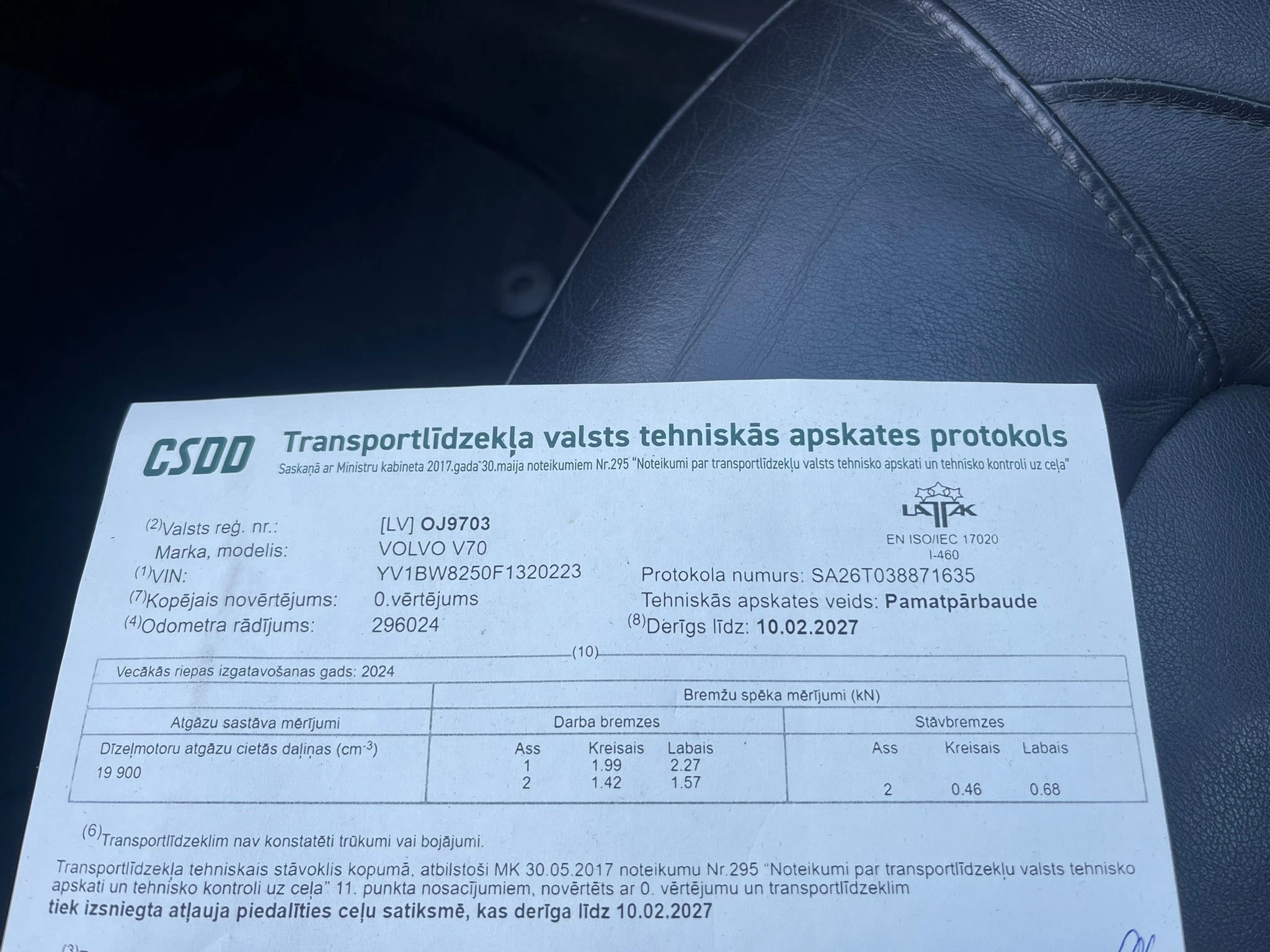 Tehniskā apskate :10.02.2027