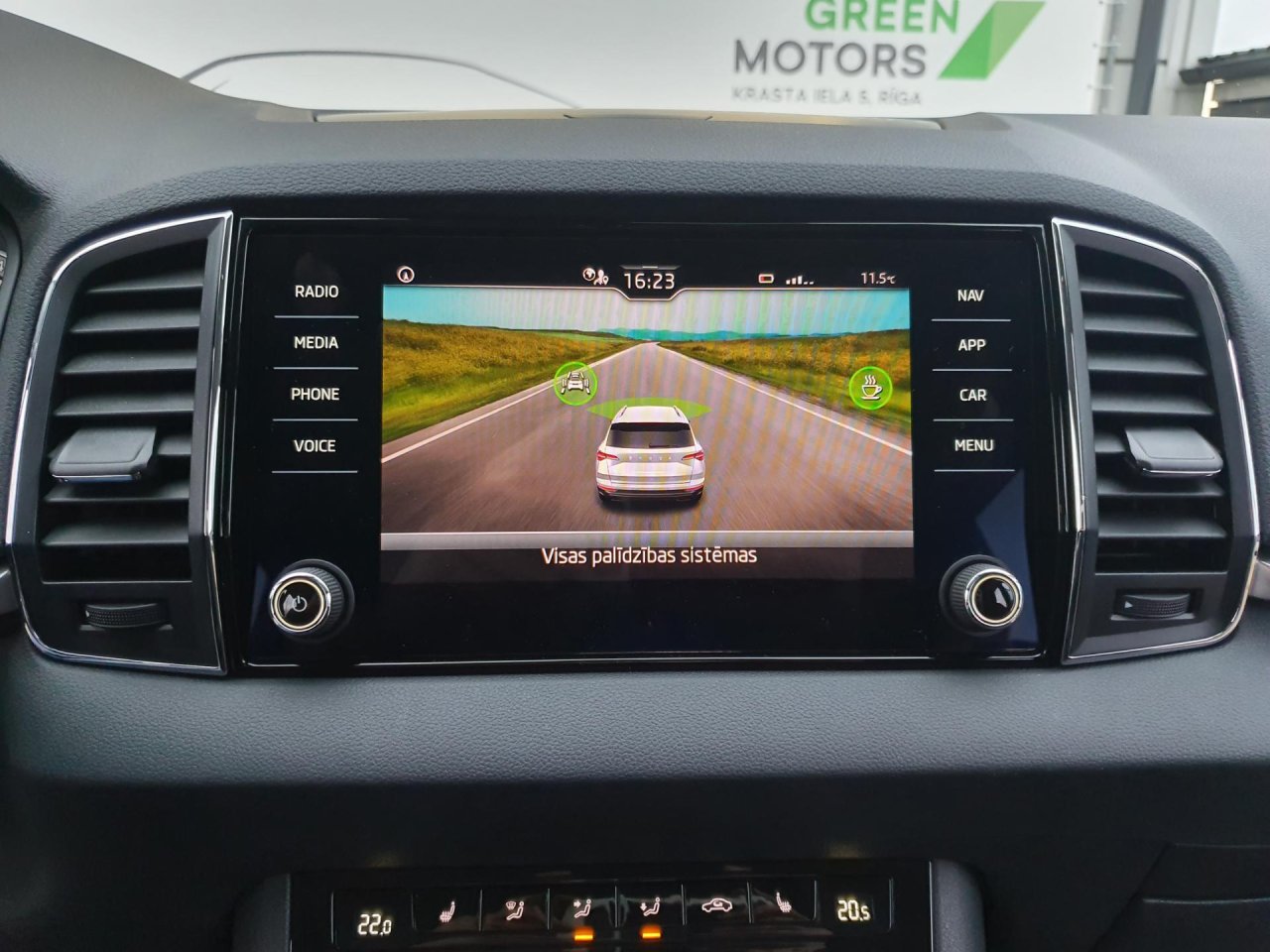 Priekšējie un aizmugurējie stāvvietā novietošanas sensori ar MANOEUVRE ASSIST - ārkārtas bremzēšanas asistentu un vizuālu informāciju radio iekārtas displejā
